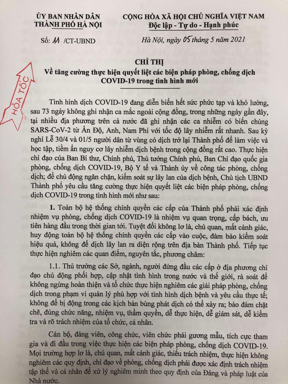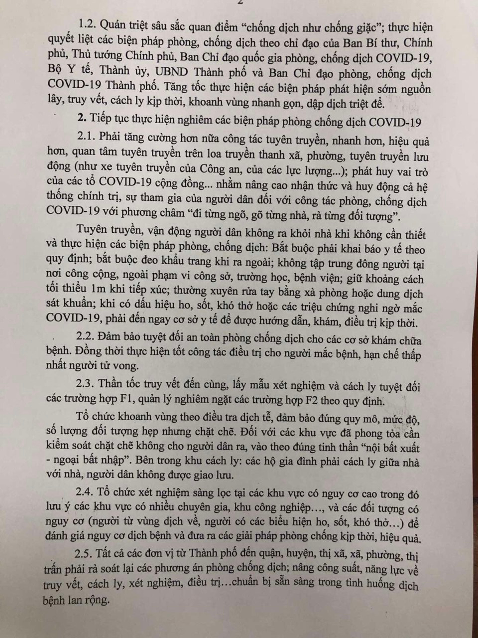 Tình hình dịch Covid-19 đang diễn biến hết sức phức tạp và khó lường, trong những ngày gần đây, tại nhiều địa phương trên cả nước đã ghi nhận các ca nhiễm có biến chứng SARS-CoV-2 từ Ấn Độ, Anh, Nam Phi với tốc độ lây nhiễm rất nhanh. Sau kì nghỉ lễ 30/4 và 01/5 người dân từ vùng có dịch trở lại Thành phố để làm việc và học tập, tiềm ẩn nguy cơ lây nhiễm dịch bệnh trong cộng đồng rất cao. Thực hiện chỉ đạo của Ban Bí thư, Chính phủ, Thủ tướng Chính phủ, Ban Chỉ đạo quốc gia phòng, chống dịch COVID-19, Bộ Y tế và Thành ủy về công tác phòng, chống dịch; để chủ động ngăn chặn, kiểm soát sự lây lan của dịch bệnh, đề nghị tất cả cán bộ, giáo viên, nhân viên trong nhà trường nghiêm túc thực hiện chỉ thị số 11, nâng cao ý thức tự giác và tăng cường thực hiện quyết liệt các biện pháp phòng, chống dịch COVID-19.