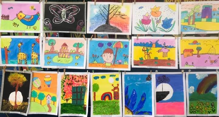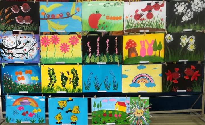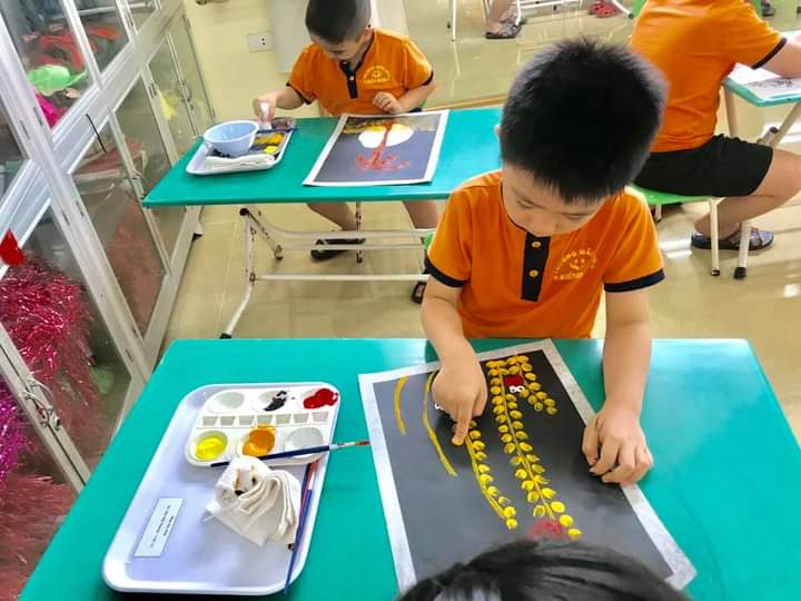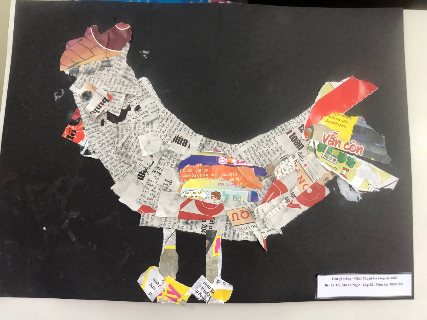 Cẩn thận trong từng nét vẽ, nắn nót trong từng chi tiết, sáng tạo trong việc lựa chọn màu tô...các bé đã tạo ra các sản phẩm vô cùng ngộ nghĩnh và đáng yêu; đa dạng về nội dung, thể loại, nguyên vật liệu, bố cục hài hòa cân đối. Các bé được thỏa sức sáng tạo với sáp màu, màu nước, được chấm màu, thổi màu, phết màu với các hình hình học ngộ nghĩnh và đặc biệt được sáng tạo từ chất liệu giấy báo cũ nữa đấy. Dưới đây là một số hình ảnh trong ngày hội: